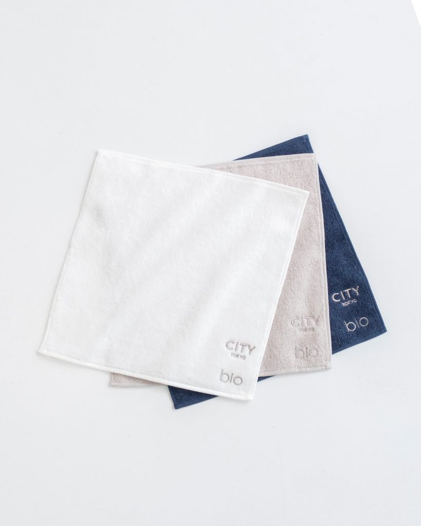 オープニングを記念し、世界的に注目を集める新素材「PlaX™(プラックス)」を配合した、抗菌・防臭機能を備える今治製「bio Towel(バイオタオル)」のCITY TOKYOロゴ入り特別仕様を、税込30,000円以上お買い上げのお客様へノベルティとしてプレゼントいたします。